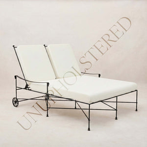 Su estructura es de hierro moldeado a mano, con recubrimiento en polvo para resistir las inclemencias del tiempo. Tapizados en bouclé para exteriores, un guiño a la herencia francesa de la tela, los cojines ofrecen un soporte suave, resistente y acogedor. Al plegarse, la estructura se mantiene: escultural, elegante y siempre en su lugar.